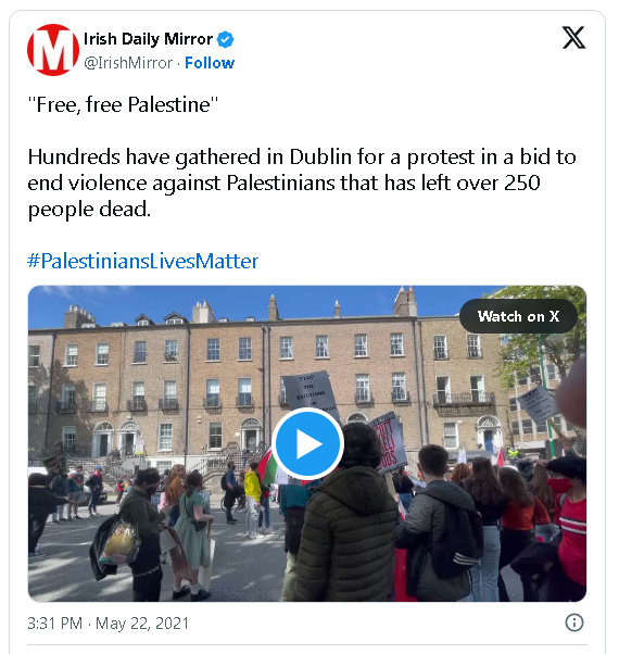 Racist chant at anti-Israel march in Dublin, 22 May 2021.
