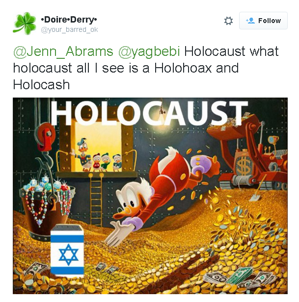 It took me just minutes to discover he is friendly with no less than 3 (three!) Holocaust deniers online.