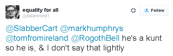 He says he doesn't call me a "kunt" lightly,