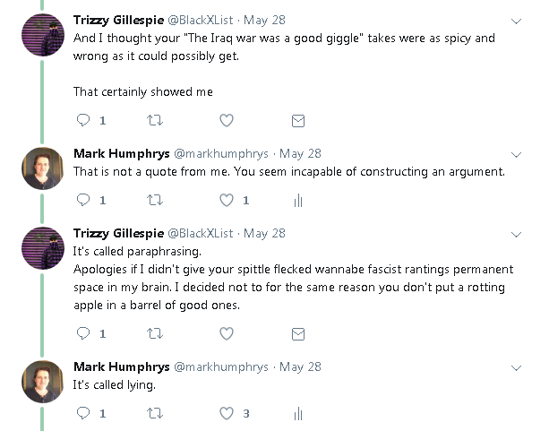 He then repeatedly calls me a "fascist".
