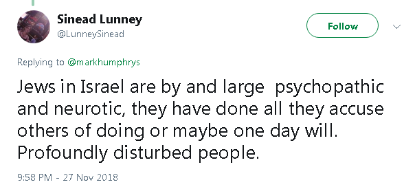 Irish Israel-hater called