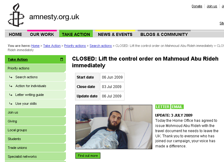 Amnesty's campaign for Mohmoud Abu Rideh (or Mahmud Abu Rideh) illustrates why I no longer support Amnesty.