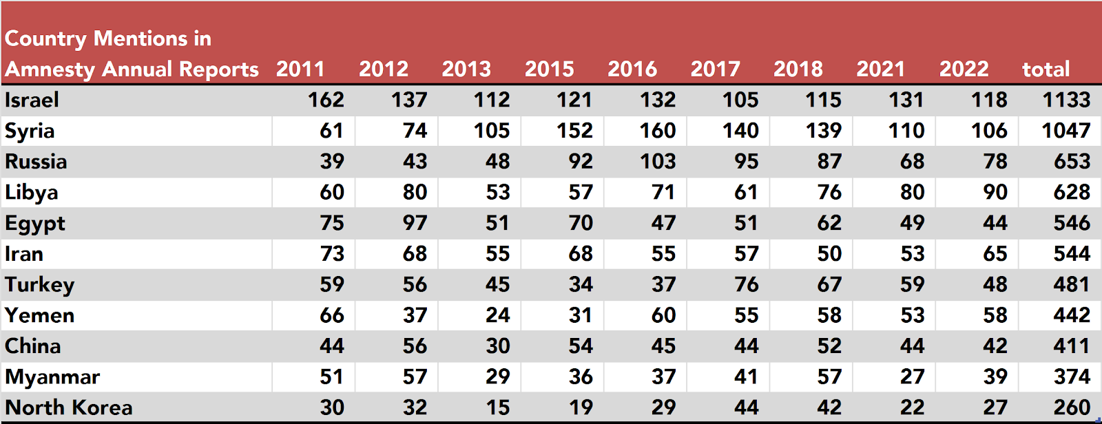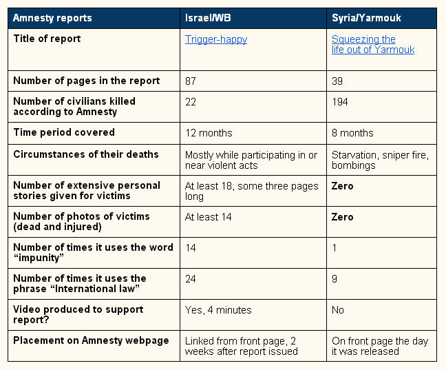 Elder of Ziyon contrasts two Amnesty reports in 2014 - on Israel (counter-jihad operations by a restrained liberal democracy) and Syria (disgusting butcher and dictator slaughters his own citizens).