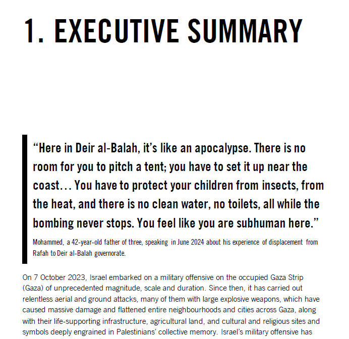 The opening line is: "On 7 October 2023, Israel embarked on a military offensive on the occupied Gaza Strip (Gaza) of unprecedented magnitude, scale and duration."