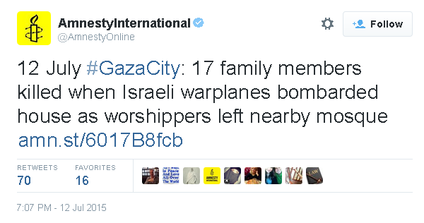 This tweet of 12 July 2015 shows why you can't trust Amnesty.