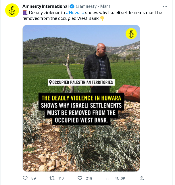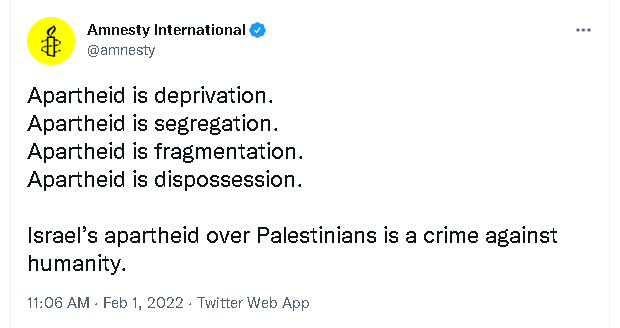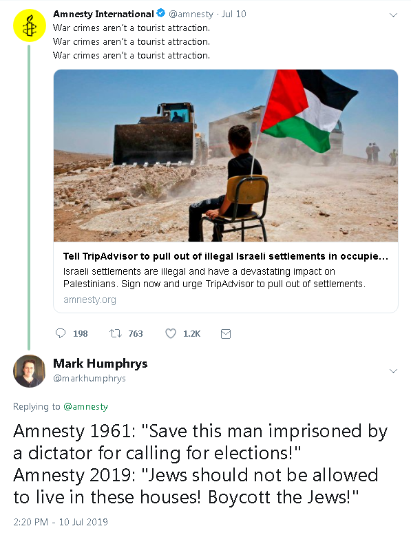Nothing sums up the sad decline of Amnesty better than the fact that they now claim that Jews building houses are "war crimes". What a pathetic organisation.