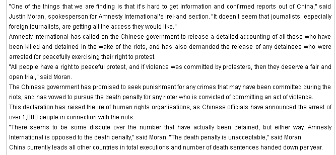 In this piece on China, July 16, 2009, Justin Moran of Amnesty claims to be opposed to the death penalty.