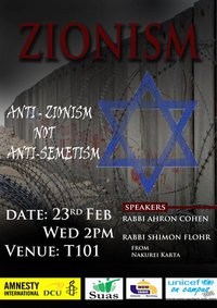 Amnesty at Dublin City University promotes a talk by Neturei Karta, 23 Feb 2011.