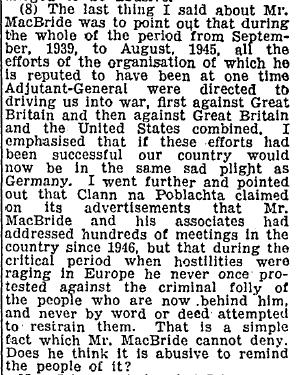 After the war, Seán MacEntee writes with anger about Sean MacBride's wartime role.