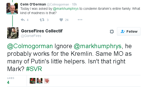 He is so angry with me that he "likes" this insane tweet suggesting I am working for the Kremlin!