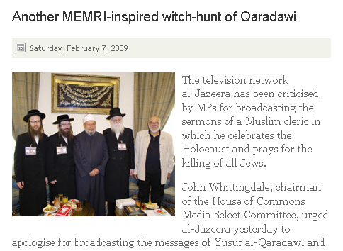 Islamophobia Watch is trying to pretend that Al-Qaradawi has no problem with Jews.