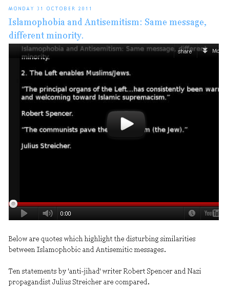 Islamophobia Watch, Feb 2009, even defends