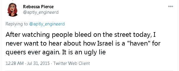 She says if you criticise the treatment of gays in the West Bank and Gaza, you are: