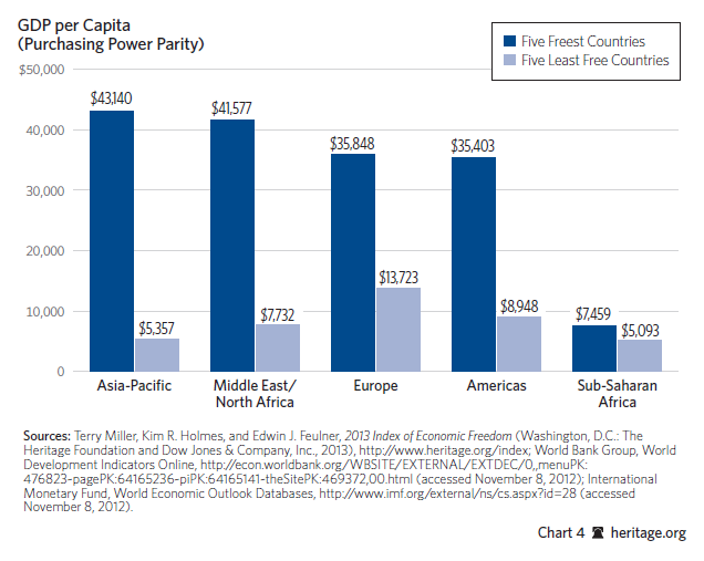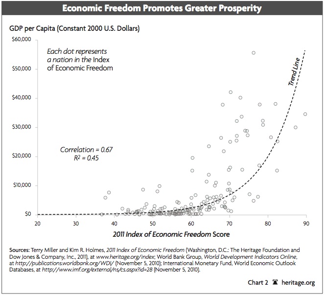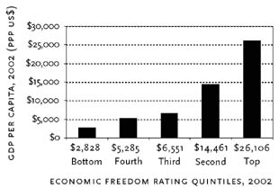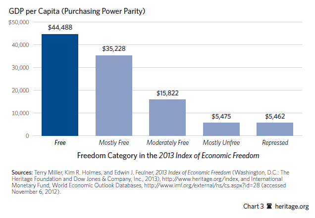 Perhaps the clearest finding in all of economics is the correlation between economic freedom and prosperity. Compare the table of economic freedom with the table of the richest countries.