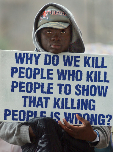 Irony: A 2004 protester at the coming execution (carried out 2005) of rapist and serial killer Michael Bruce Ross in Connecticut.