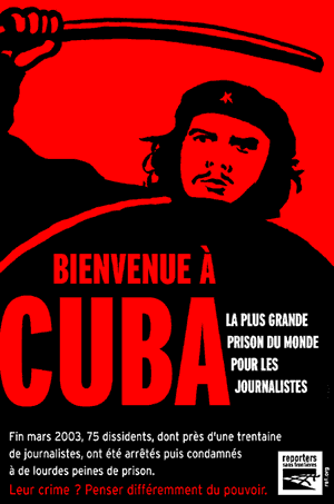 The poster says: "Welcome to Cuba: The biggest prison in the world for journalists".