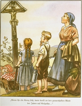 The text reads: "When you see a cross, then think of the horrible murder by the Jews on Golgotha ..."