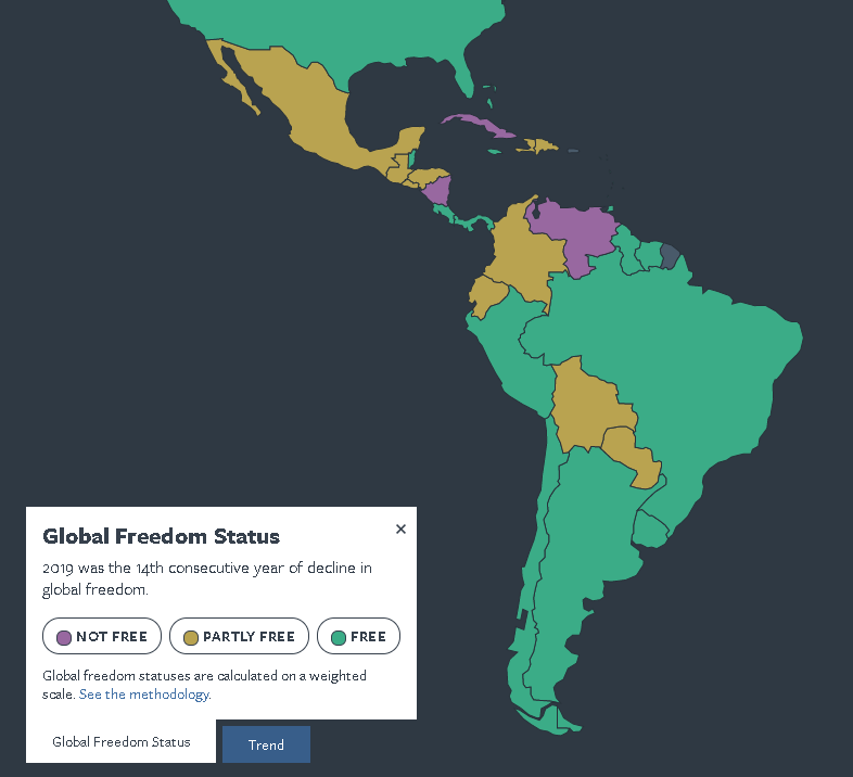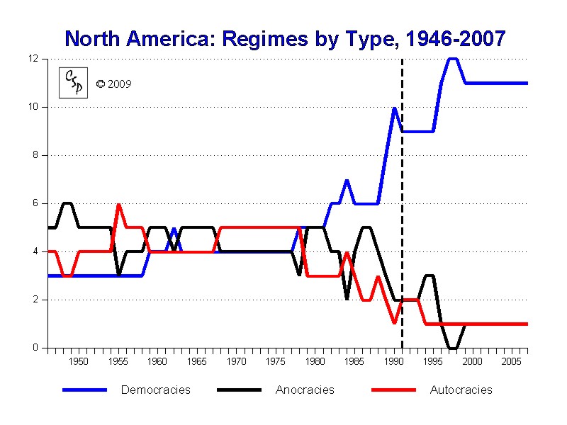 Trends in freedom in North (includes Central) and South America, 1946-2007.