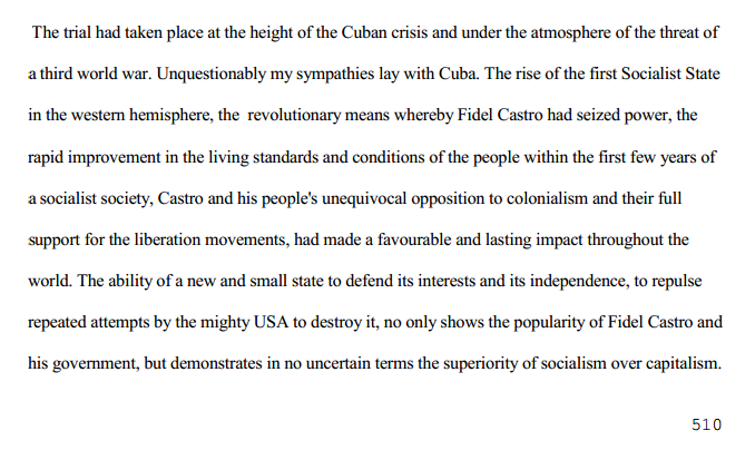 "The trial had taken place at the height of the Cuban [missile] crisis and under the atmosphere of the threat of