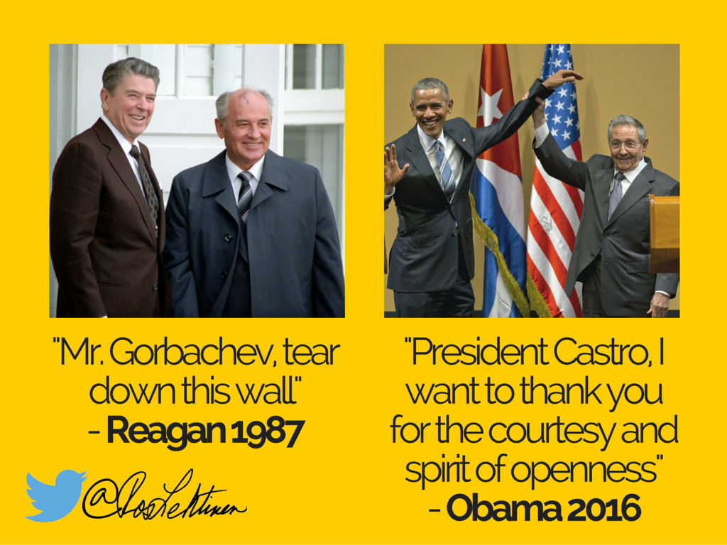 Dumbass American President visits communist Cuba, Mar 2016, and tells them they are great.