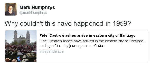 "Good to hear @LordMayorDublin opening book of condolence for Fidel Castro.