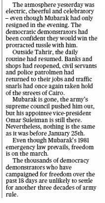 Sandmonkey, 12 Feb 2011, on the fall of Mubarak: