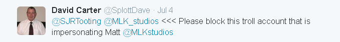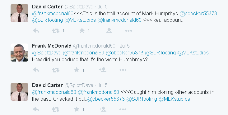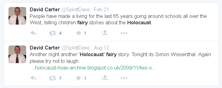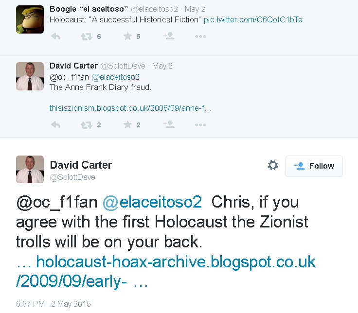 Above I was accused by Holocaust denier David Carter of impersonating his friend