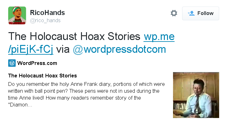 by anti-semite and Holocaust denier "rico_hands", who Frank follows.