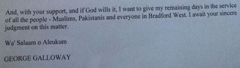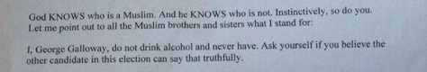 And this kind of religious bolloxology is meant to make the voter support Galloway?