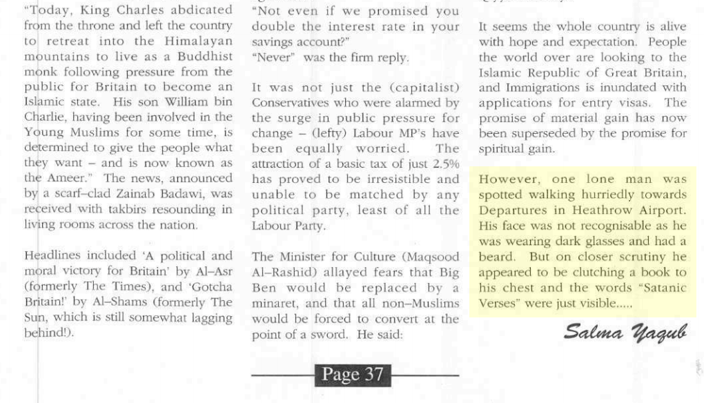 Salma Yaqoob imagines an Islamic Britain. She laughs at the idea of Salman Rushdie fleeing Britain.