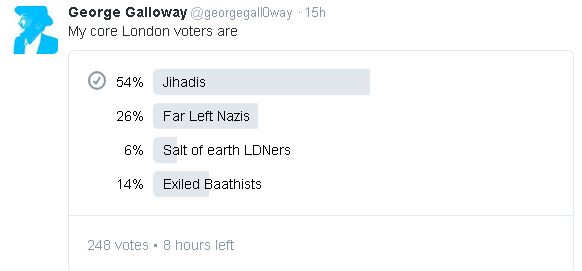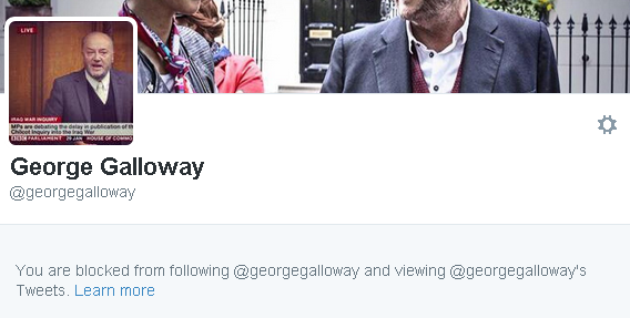 I discover that I am blocked on Twitter by George Galloway.