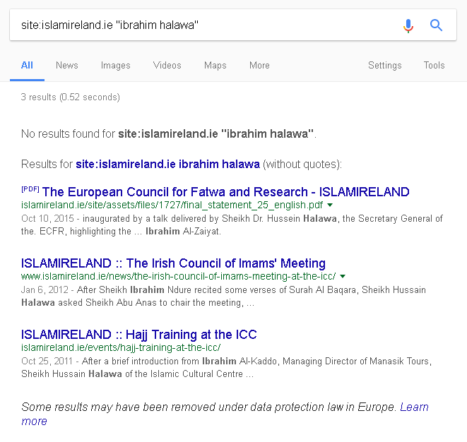 Number of Google hits on site for "Ibrahim Halawa" (as at Sept 2017)