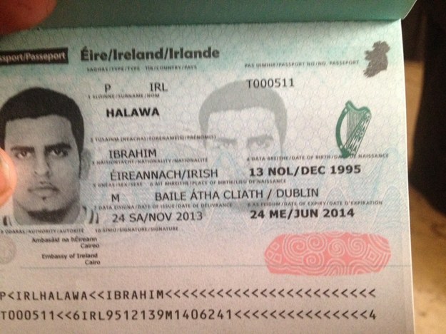 Note this is an emergency, 7 month passport issued by the Irish Embassy in Cairo in Nov 2013, after Halawa was arrested in Aug 2013.