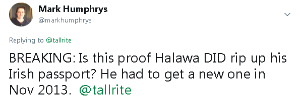 The pro-Halawa Irish left loves the passport story. They obsess about it, and endlessly talk about it. They want to talk about nothing else.