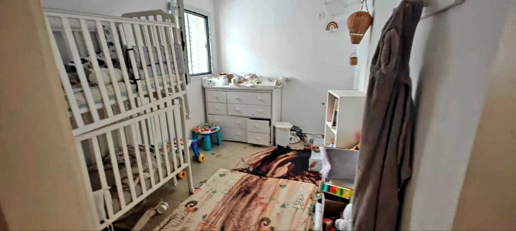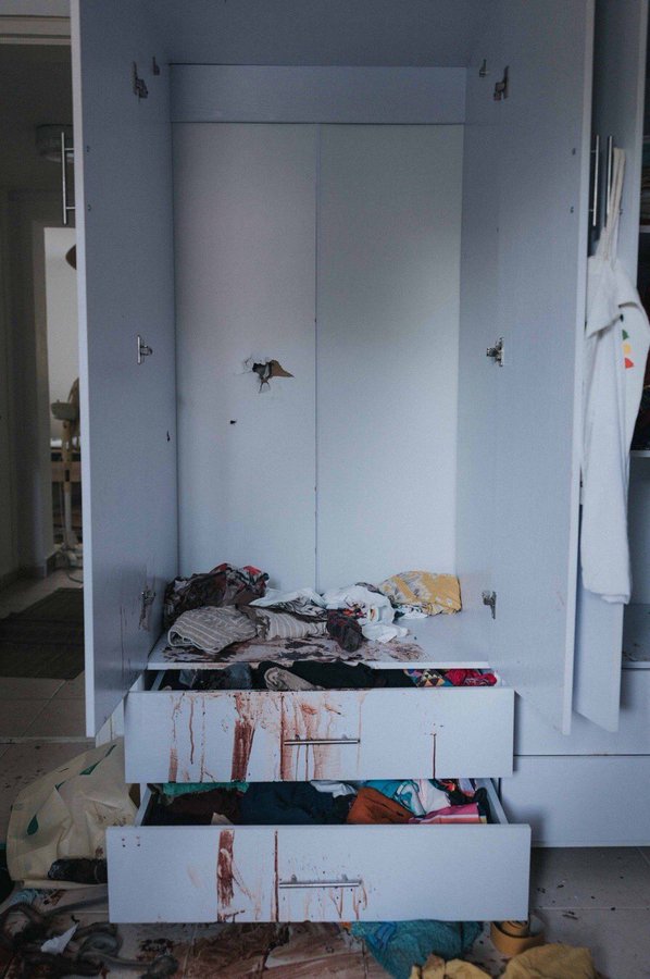 Two small Israeli children tried to hide in this closet in their home. They were found by Hamas and shot on the spot.
