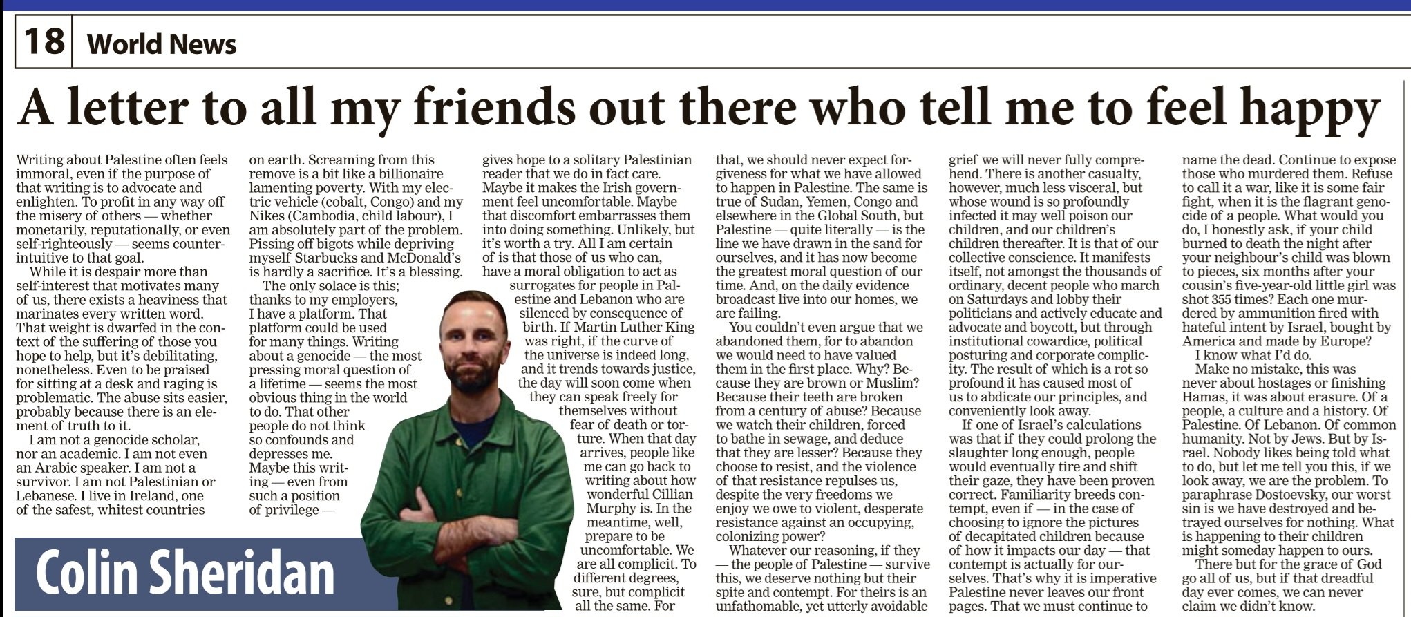 A letter to all my friends who tell me to feel happy, Colin Sheridan,
