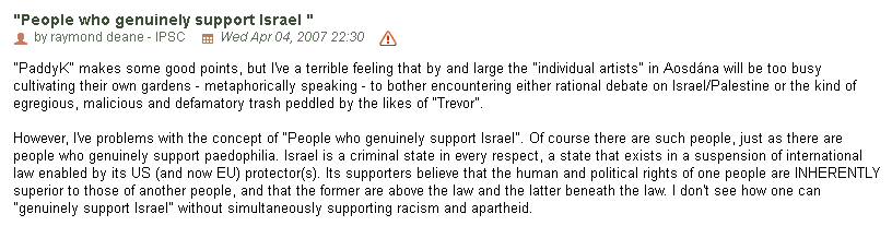 Raymond Deane, 21 Aug 2010, replies, showing his true colours.