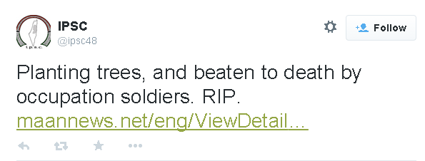 The IPSC claims he was "beaten to death" by Israeli soldiers, which is total nonsense.