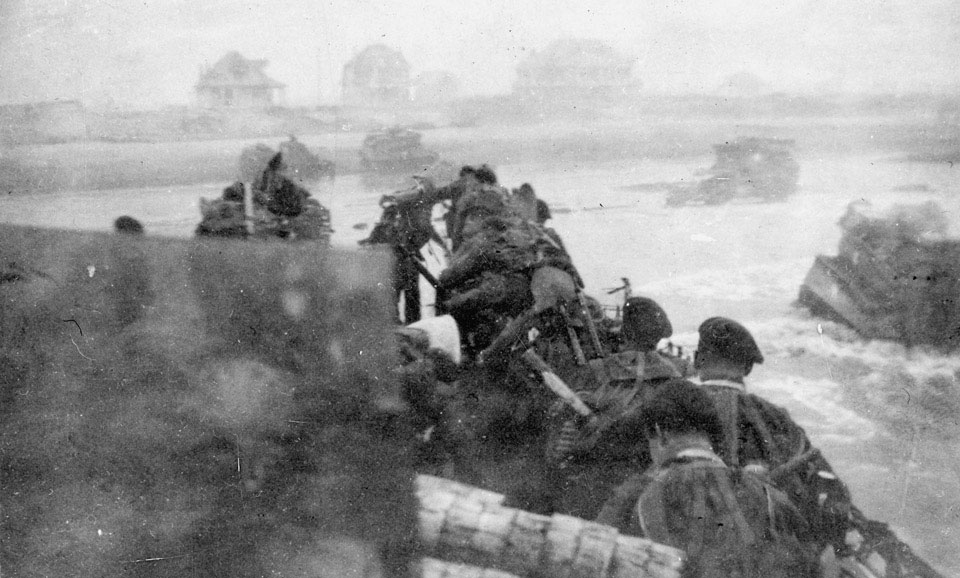 British troops wading ashore from landing craft, Sword Beach, D-Day, 6 June 1944.