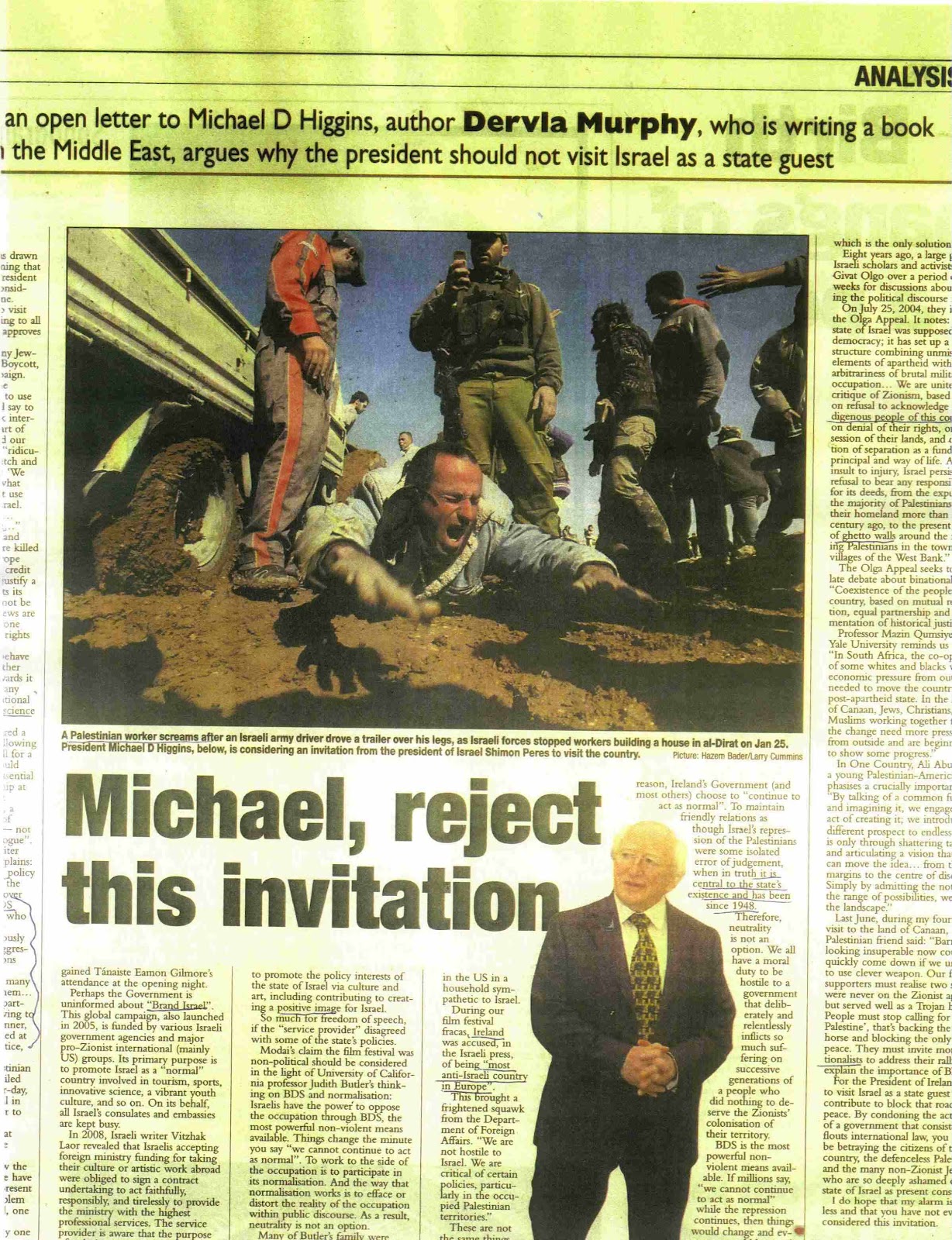 The Irish Examiner, 9 Feb 2012, prints an Israel-bashing article by Dervla Murphy.