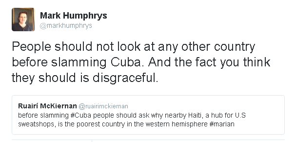 After the mass-murdering dictator Castro died in Nov 2016, Ruairí McKiernan was one of those engaging in "whataboutery".