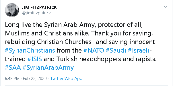 Jim Fitzpatrick, Feb 2020, declares support for the Assad regime in Syria.