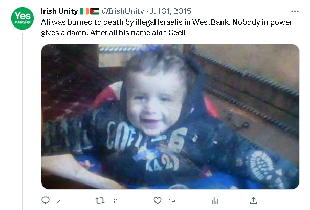 Shows that Ireland's anti-Israel hatred and "solidarity" with Palestinians is rather new and artificial,