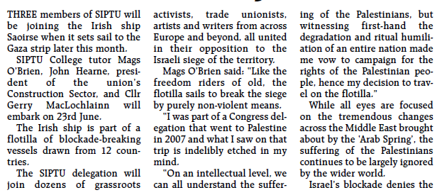 Ireland's largest trade union, SIPTU, abuses its position by using the fees of its members to pay for anti-Israel agitation and partnership with the oppressive and terrorist Palestinian Authority.