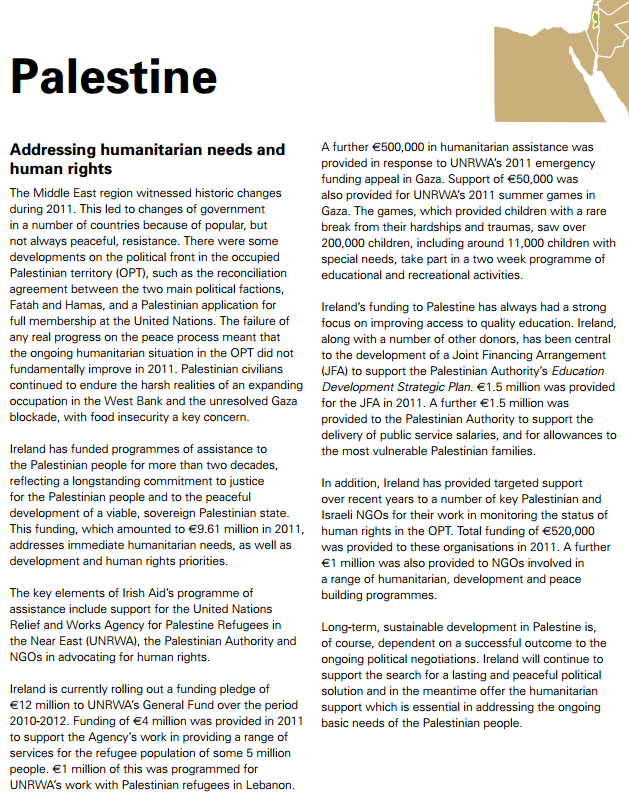 Above is the section on "Palestine" from the 2011 annual report of Irish Aid.