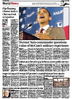 30 June 2008 (during the US election campaign): "Former Nato commander questions value of McCain's military experience" Also here.