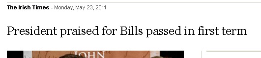 President Obama, 23 May 2011, at the time of his visit to Ireland, is highly praised.