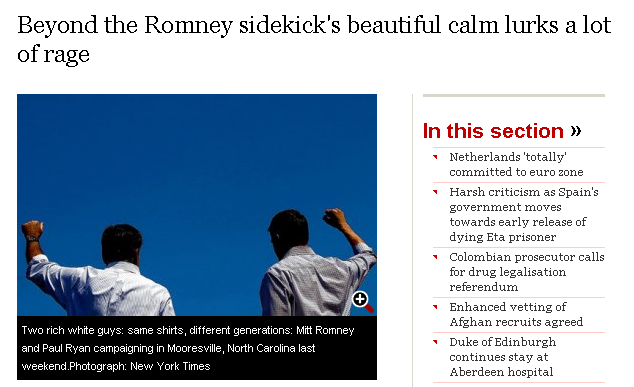 The Irish Times, 20 Aug 2012, sneers at Romney and Ryan as "Two rich white guys".
