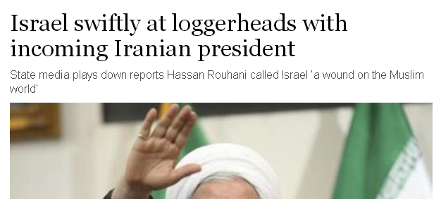 No, of course not. They are committed to the idea that this genocidal Islamist really is a "moderate". So they title it: "Israel swiftly at loggerheads with incoming Iranian president". As if Israel is to blame!