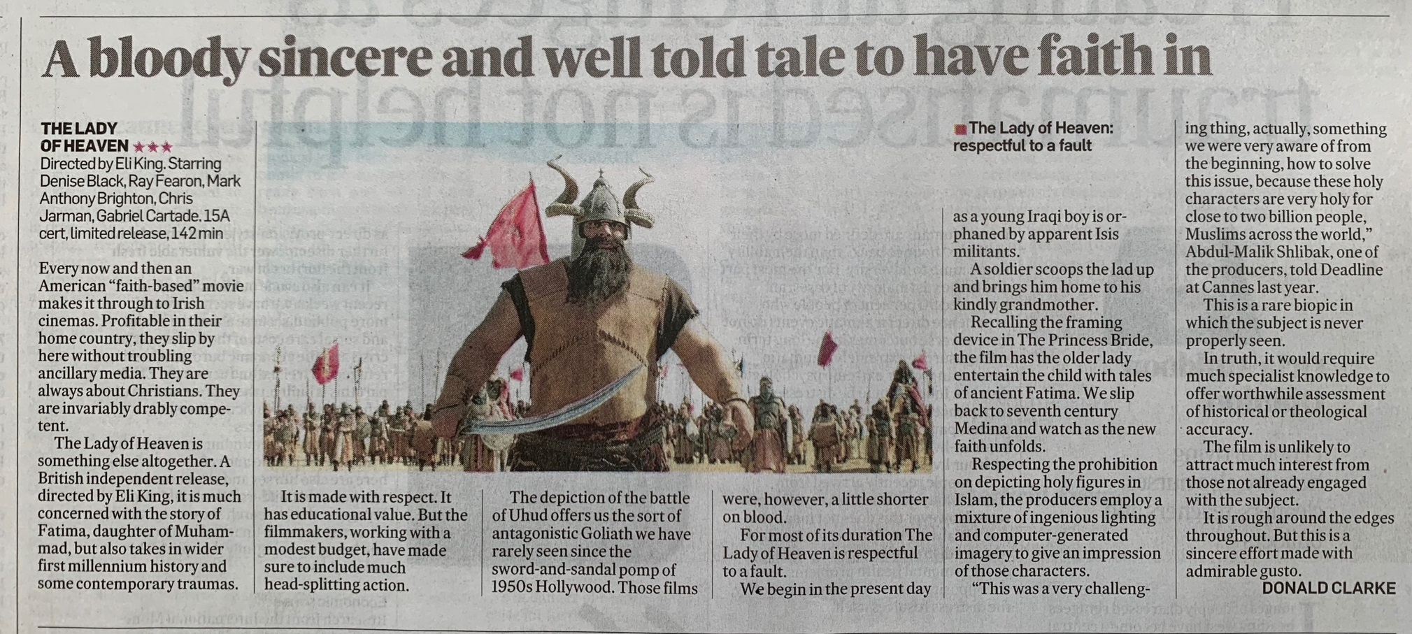 Donald Clarke, Irish Times, 29 April 2022, positively reviews an Islamic devotional film The Lady of Heaven. See trailer.